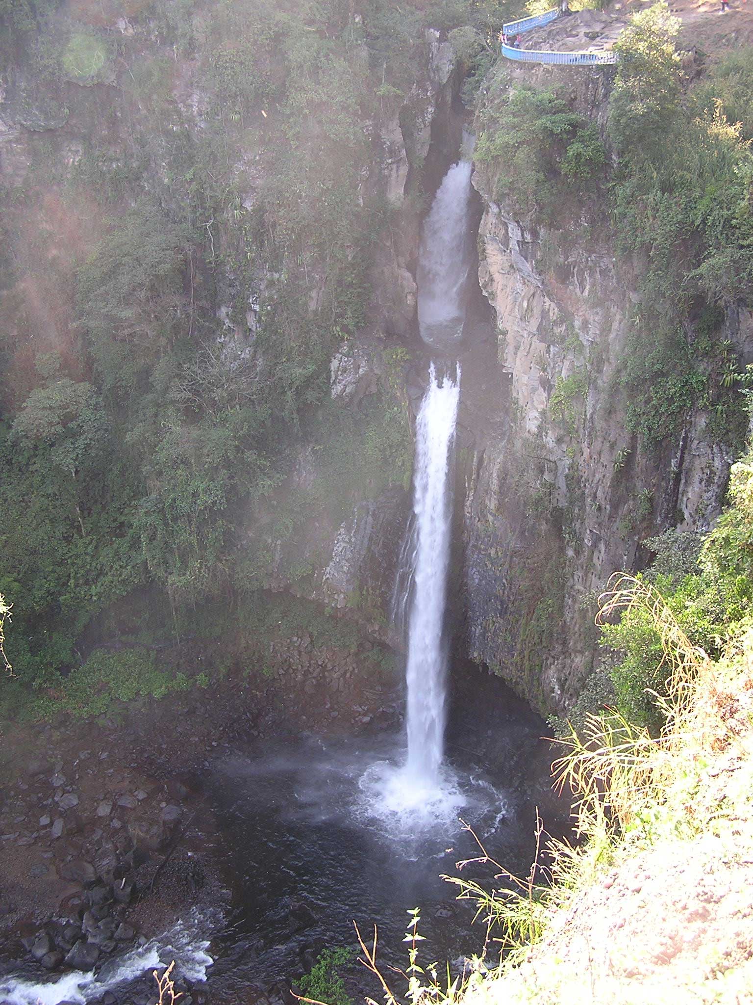 Between Xico and Teocelo, these falls provide moisture all year allowing a mixture of temperate and tropical bryophyte cover. The river drains from Cofre de Perote east across this rich volcanic land that produces fine high elevation coffee.