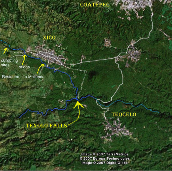 Site #3, State: Veracruz. Municipality: Xico. Locality: southeast of Xico, Texolo Falls. Vegetation: Elevation: 1000 m asl Lat 19 24 13 N, Long 96 59 38 W