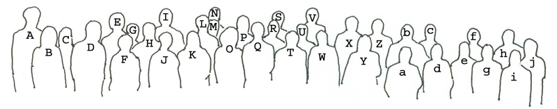 A: R. Miranda González; B: Alejandrina Bárcenas Peña; C: Xochitl Galarza; D: Claudio Delgadillo-Moya; E: Markus Hauck; F: Nancy Slack; G: Gilberto Gomez; H: Steven Selva; I: Angel Zambrano García; J: Rebecca Moshman; K: María Herrera-Campos; L: Thorsten Lumbsch; M: Eric Peterson; N: Steven Leavitt; O: Rosy Perez; P: Ted Esslinger; Q: Todd Widhelm; R: Cedrik Villasenor; S: Eric Harris; T: Brendan Hodkinson; U: Ben Carter; V: Bob Egan; W: Sara Hodkinson; X: Ken Sweat; Y: Lori Kayes; Z: Steven Rice; a: Inéz Sastre-DeJesús; b: Brent Mishler; c: Daniel Stanton; d: Katie Glew; e: Clementina Equihua; f: Jennifer Riddell; g: Deneb García-Avila; h: Tom Nash; i: Khwanruan Papong; j: Efrain de Luna. Courtesy of Ted Esslinger, Dept. of Biological Sciences, North Dakota State University |