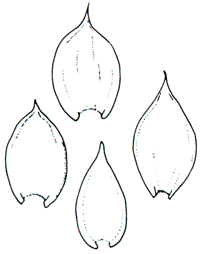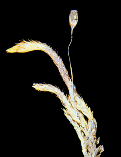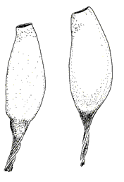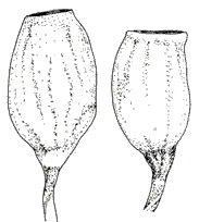 6a. Capsule elliptic, urn wall irregularly wrinkled, microstomus; seta long (7-15 mm); paraphyses long, exserted. ................................ B. secunda (Hook.) Bruch & Schimper (US, Mexico, Guatemala, Dominican Republic, Haiti, Venezuela, Bolivia).