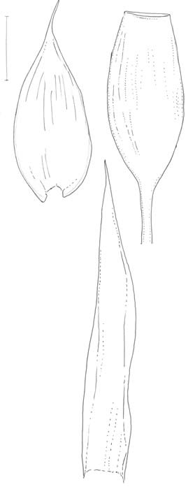 2a. Leaf margin erect, or reflexed at base; apex long 1/3-1/2 of leaf length, subulate; leaves narrowly lanceolate, spreading; capsules urceolate …… 3