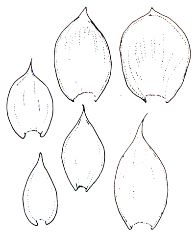 15b. Seta long (6-10 mm); capsule cylindrical to ellipsoid, exserted; leaves ovate or ovate lanceolate, imbricate ………… 16 |