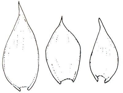 16a. Perichaetial leaves short, only as long as vegetative leaves; leaf apex subtubulose, margin entire ........... B. alopecura (Brid.) Limpr. (Switzerland, France, Italy, Portugal, Iran, Kwait, Saudi Arabia, China).