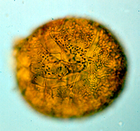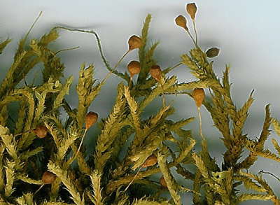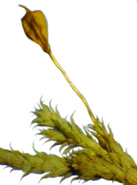 Apical leaf cells (left) and upper leaf cells (right) Branch with sporophyte. Multicellular spore Capsules urceolate to globose. |