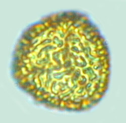 Las esporas son esféricas y miden entre 10 y 15 nm. A veces su forma es trilete ya que conservan tres caras ligeramente aplanadas lo cual indica la posición de células adyacentes en la tetrada.