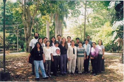 Grupo en el jardin del campus universitario, UNIVERSIDAD de Costa rica.
