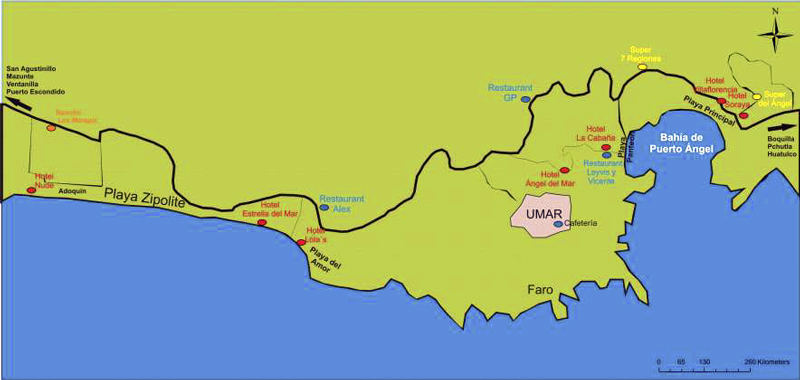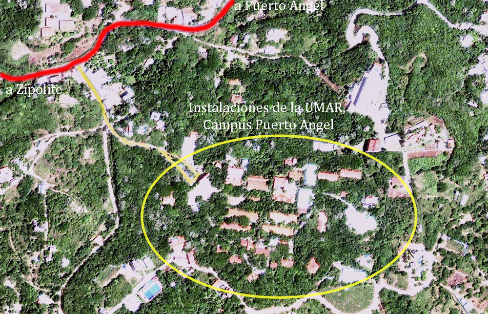 La UMAR, campus Puerto Angel se localiza al sur-oeste de
